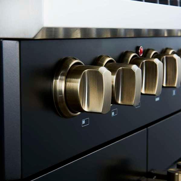 • Pro-Style Handle and Zinc Coated Metal Control Knobs and Bezel Rings.
