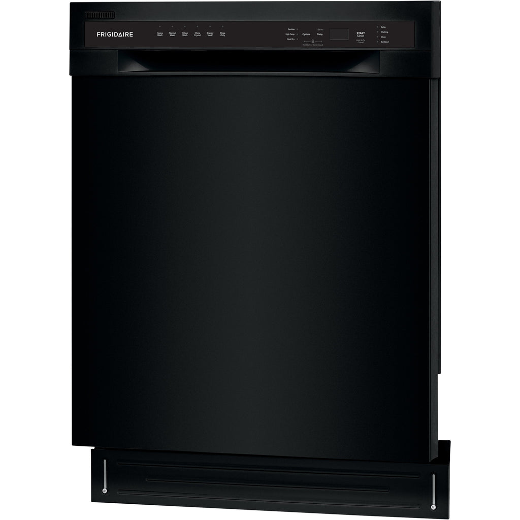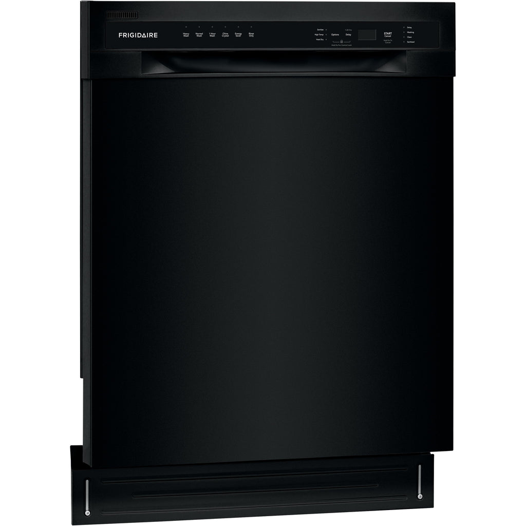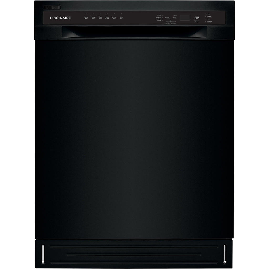 Self-cleaning filter eliminates food particles, keeping dishes clean.