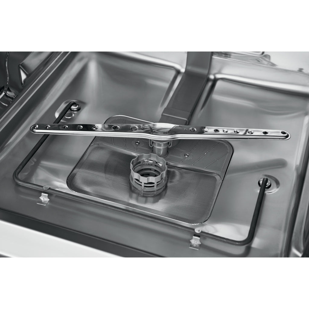 Top and bottom rack dual spray arm system gives you a thorough clean every time.
