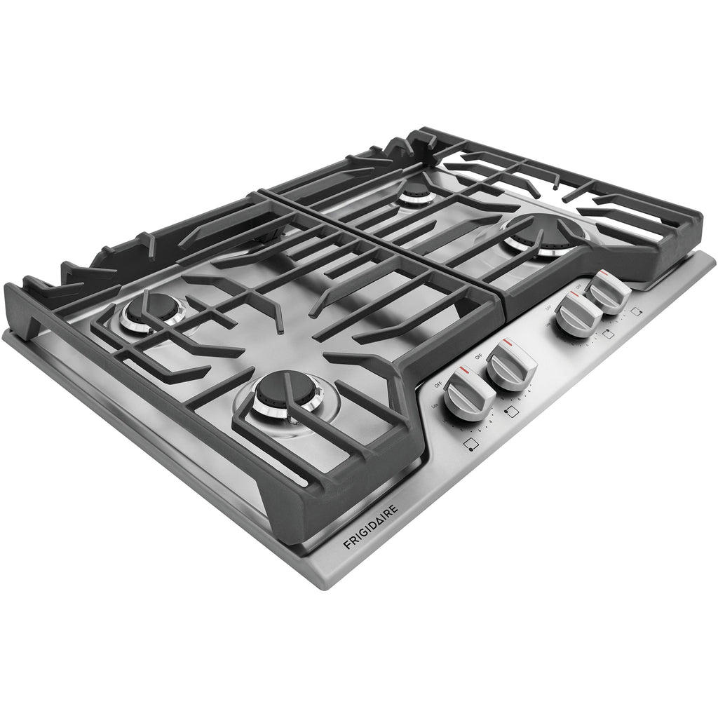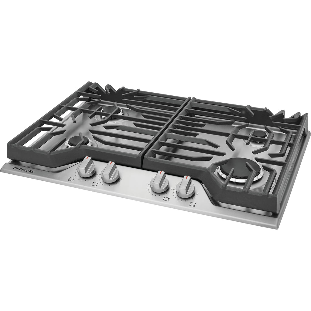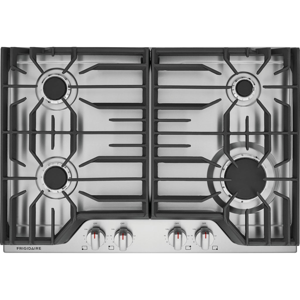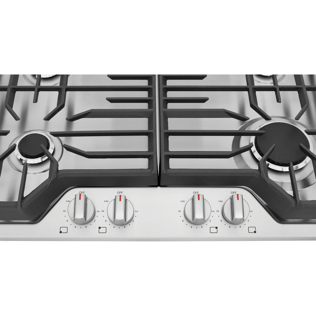 Moving heavy pots and pans across the cooktop is easier with continuous edge-to-edge grates.