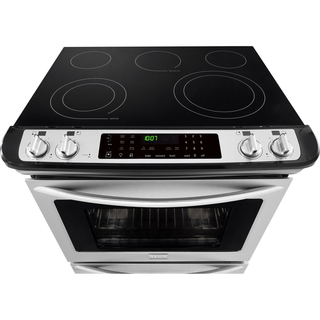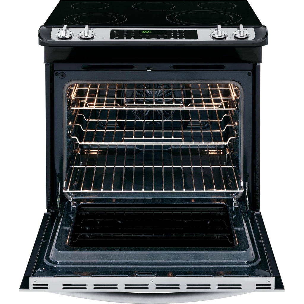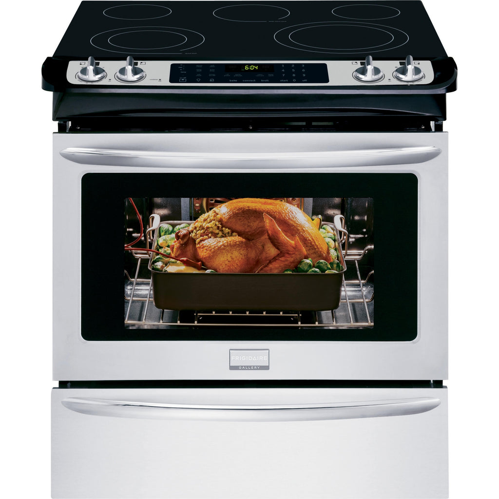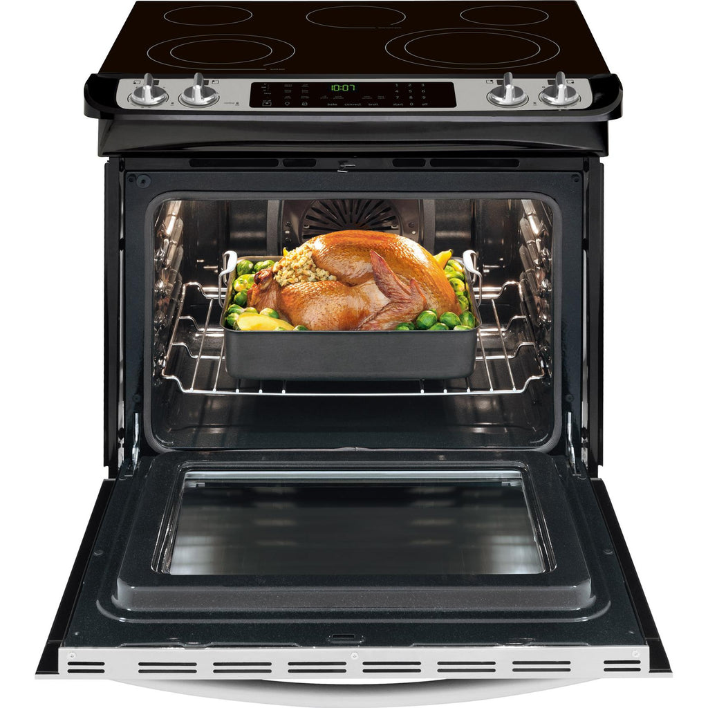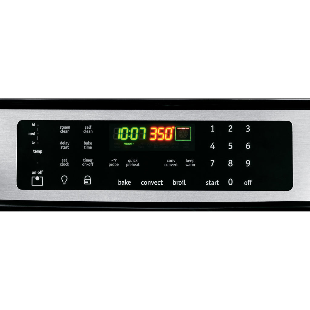 Single convection fan circulates hot air throughout the oven for faster and more even multi-rack baking.