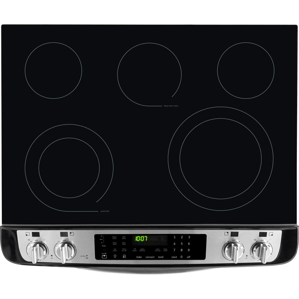 The cooktop features five burners including two SpaceWise® Expandable elements and a Warming Zone so you can cook more at once.