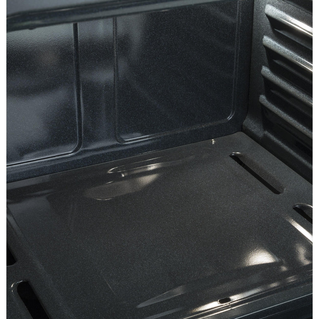 A GE invention, the Self-Clean feature uses concentrated heat to remove baked-on splatters, eliminating the need for scrubbing or use of harsh chemicals.