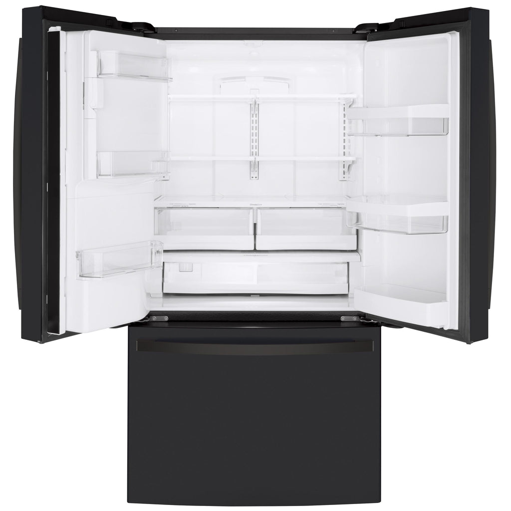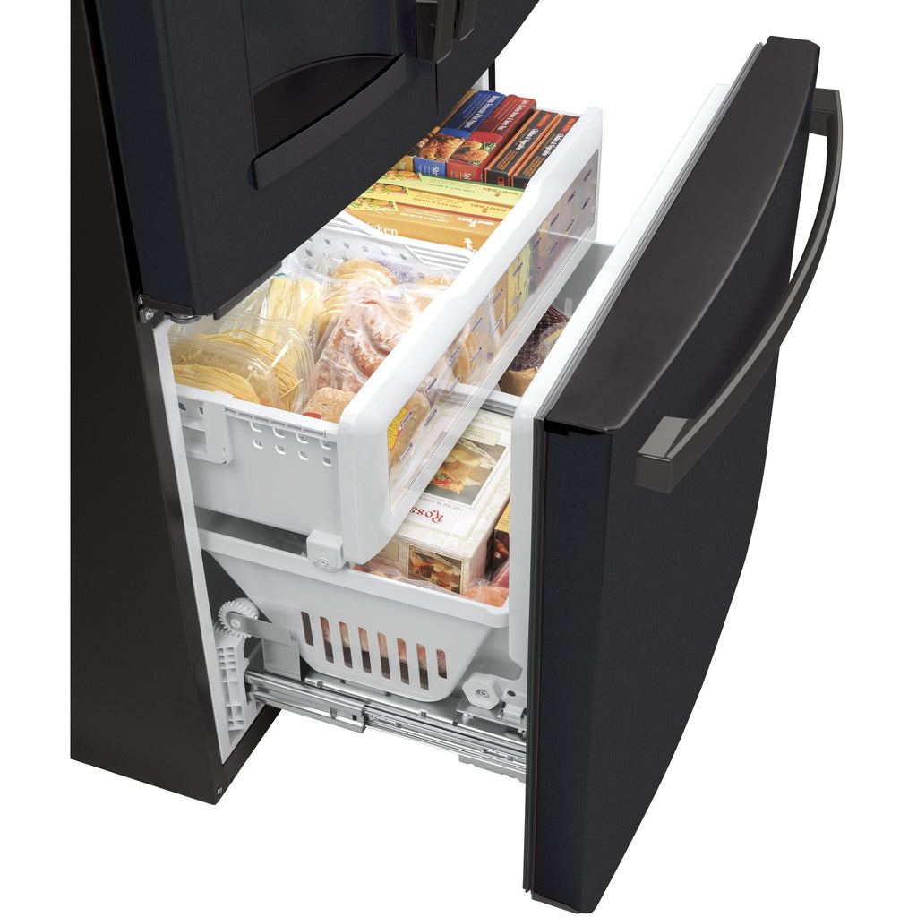 GE 36-inch, 22.1 cu.ft. Counter-Depth French 3-Door Refrigerator with external water and ice dispensing system GYE22GMNES