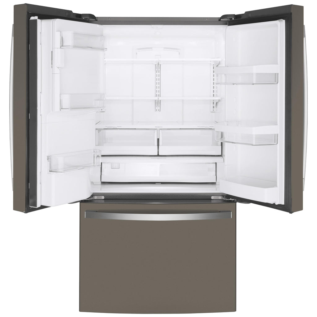 GE 36-inch, 22.1 cu.ft. Counter-Depth French 3-Door Refrigerator with external water and ice dispensing system GYE22GYNFS