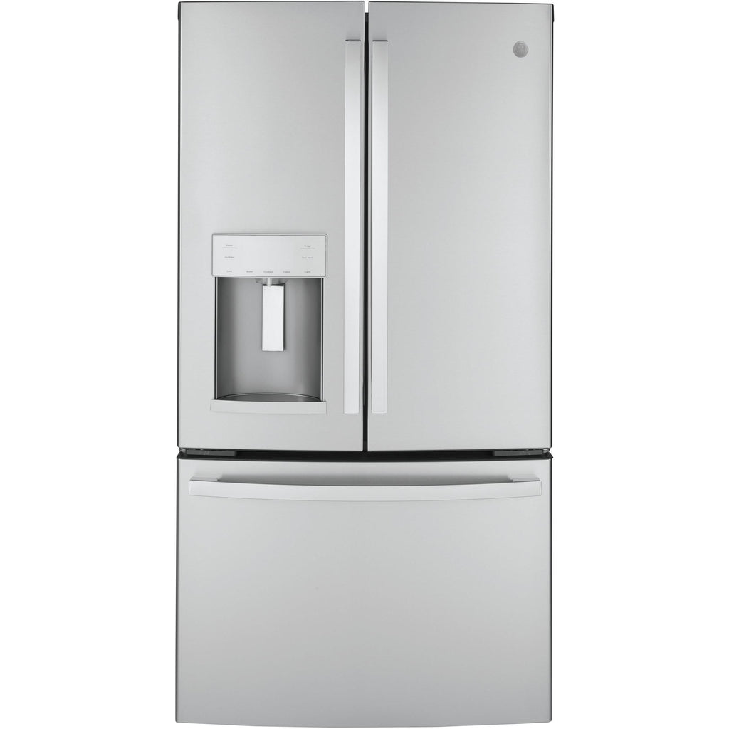 GE 36-inch, 22.1 cu.ft. Counter-Depth French 3-Door Refrigerator with external water and ice dispensing system GYE22GENDS