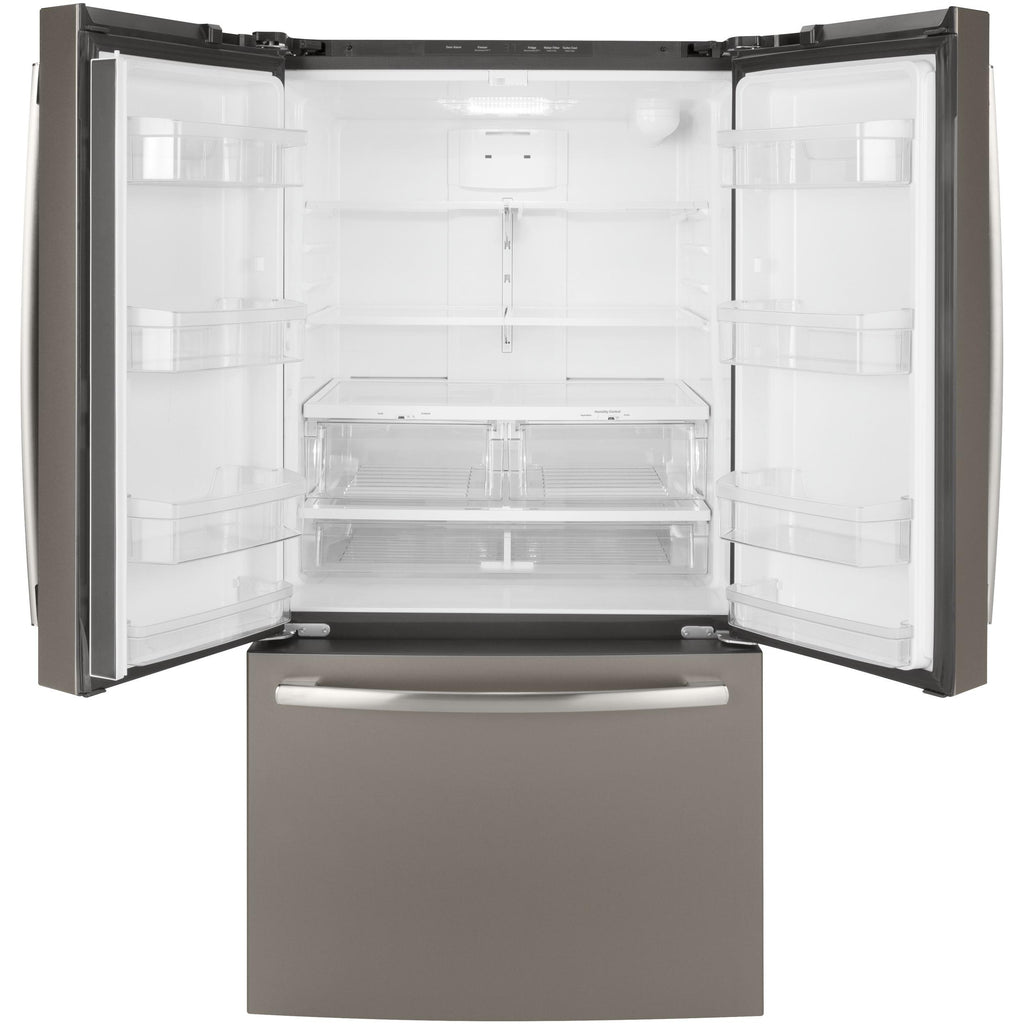 GE 36-inch, 27 cu.ft. Freestanding French 3-Door Refrigerator with Internal Water Dispenser GNE27JGMBB