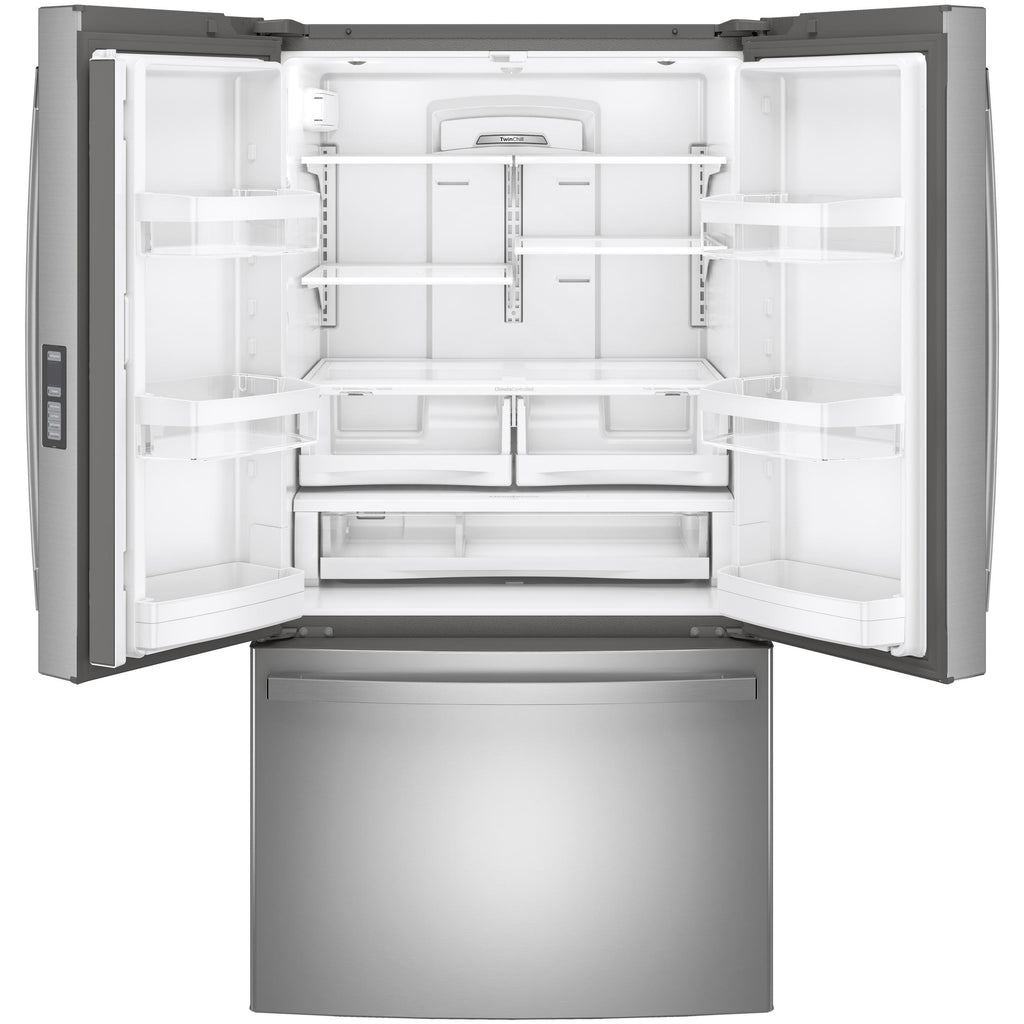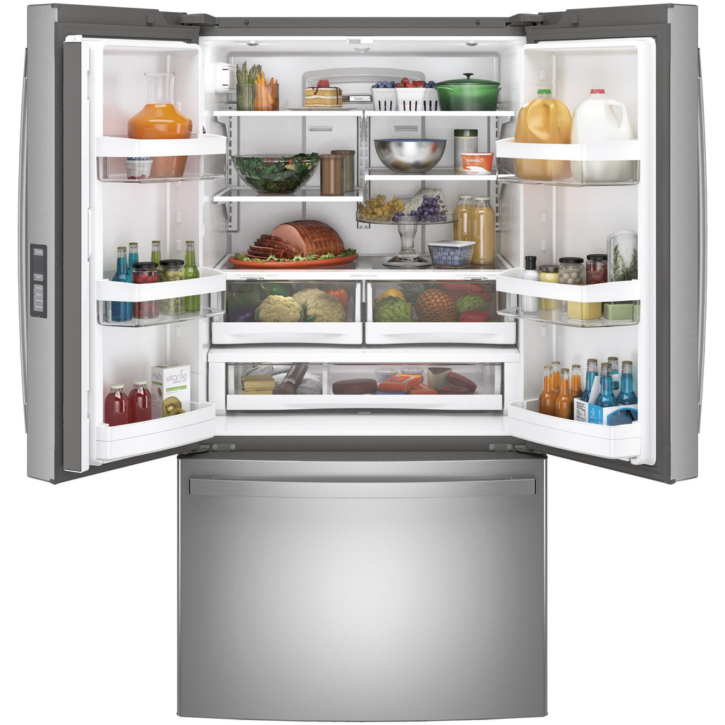 Dual evaporators maintain separate environments in both the fresh food and freezer compartments to manage temperature and humidity levels and keep foods fresh. Cold, dry air stays in the freezer compartment to prevent freezer burn, and more humid air stays in the fresh food section to keep fresh food fresh longer.