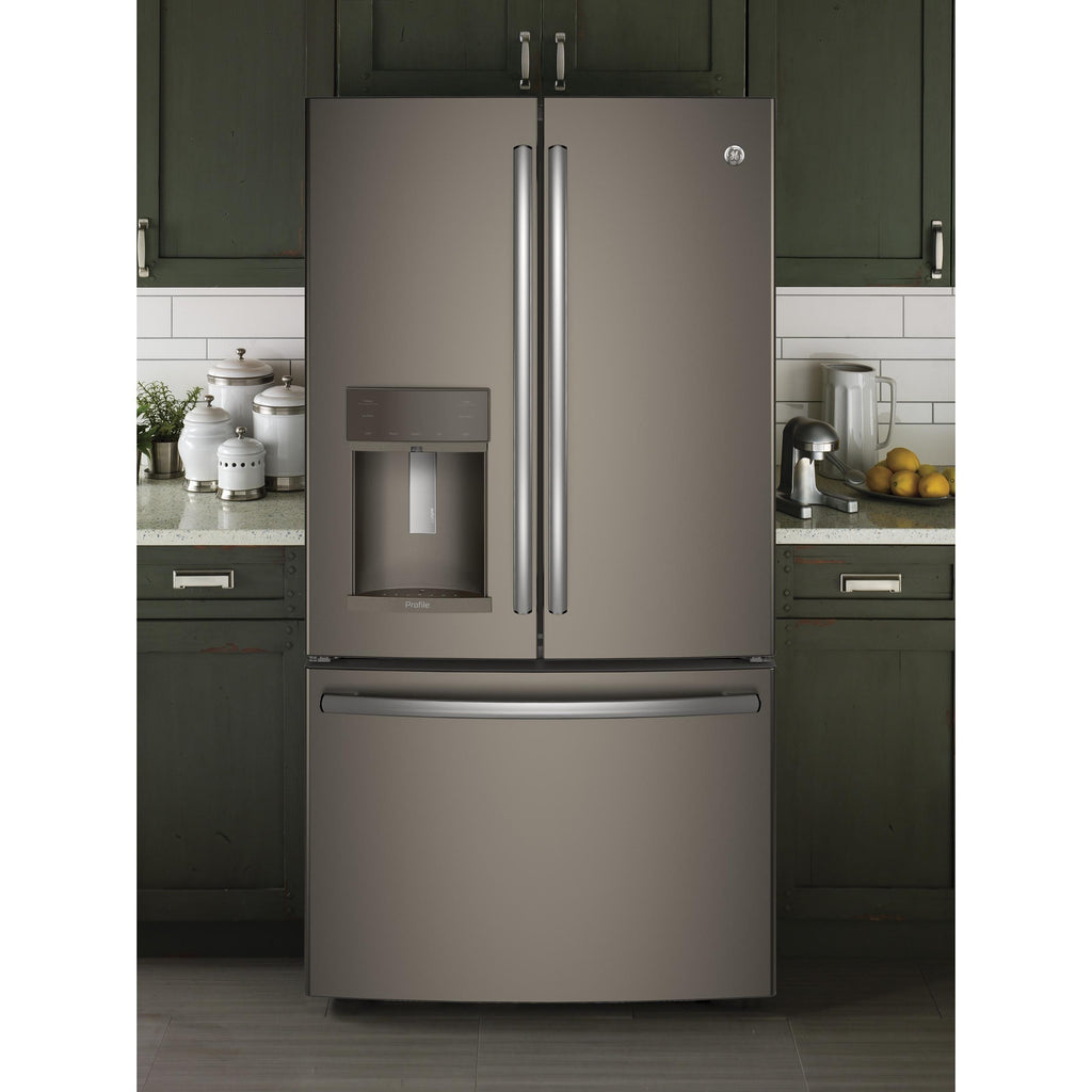 GE Profile 36-inch, 22.2 cu.ft. Counter-Depth French 3-Door Refrigerator with Water and Ice Dispensing System PYE22KYNFS