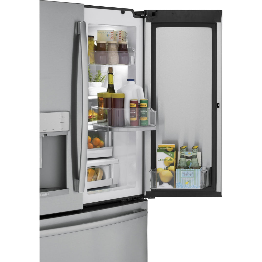 Innovative door design provides quick access to family favorites, from kids’ snacks to taller items, such as recorked wine bottles