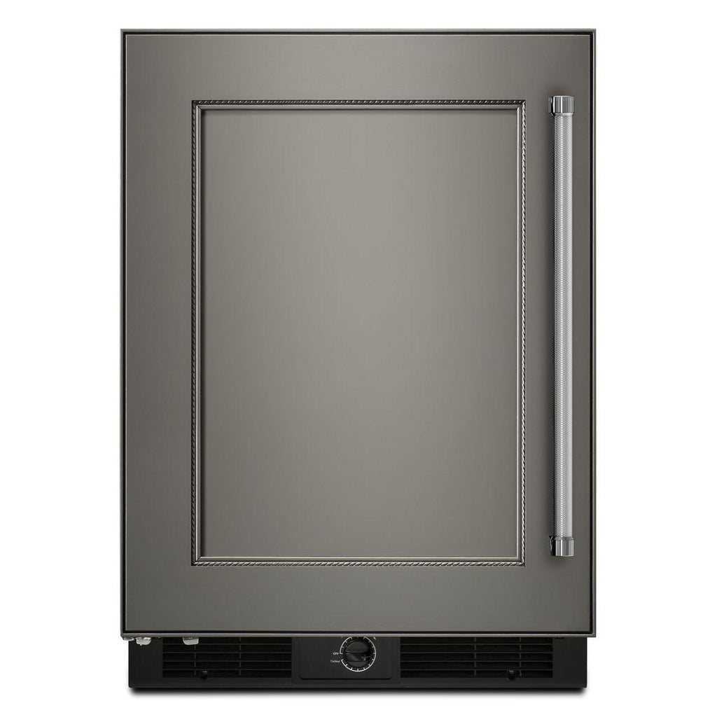 A bold blend of professionally-inspired styling and sleek touches for the home. This striking French Door Bottom Mount refrigerator features Satin Textured Handles with iconic KitchenAid Brand Medallions and the KitchenAid® Badge, a symbol of uncompromised quality.