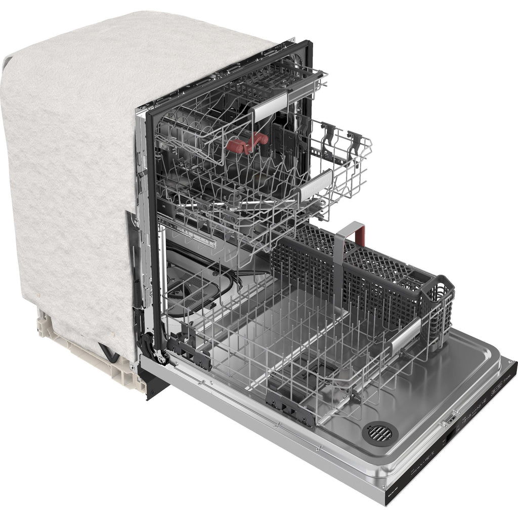Uses microfiltration to continuously remove food particles during the wash and rinse cycles and circulates clean water to dishes in all three racks. This allows dirty cookware and delicate glassware to be washed together in the same load.