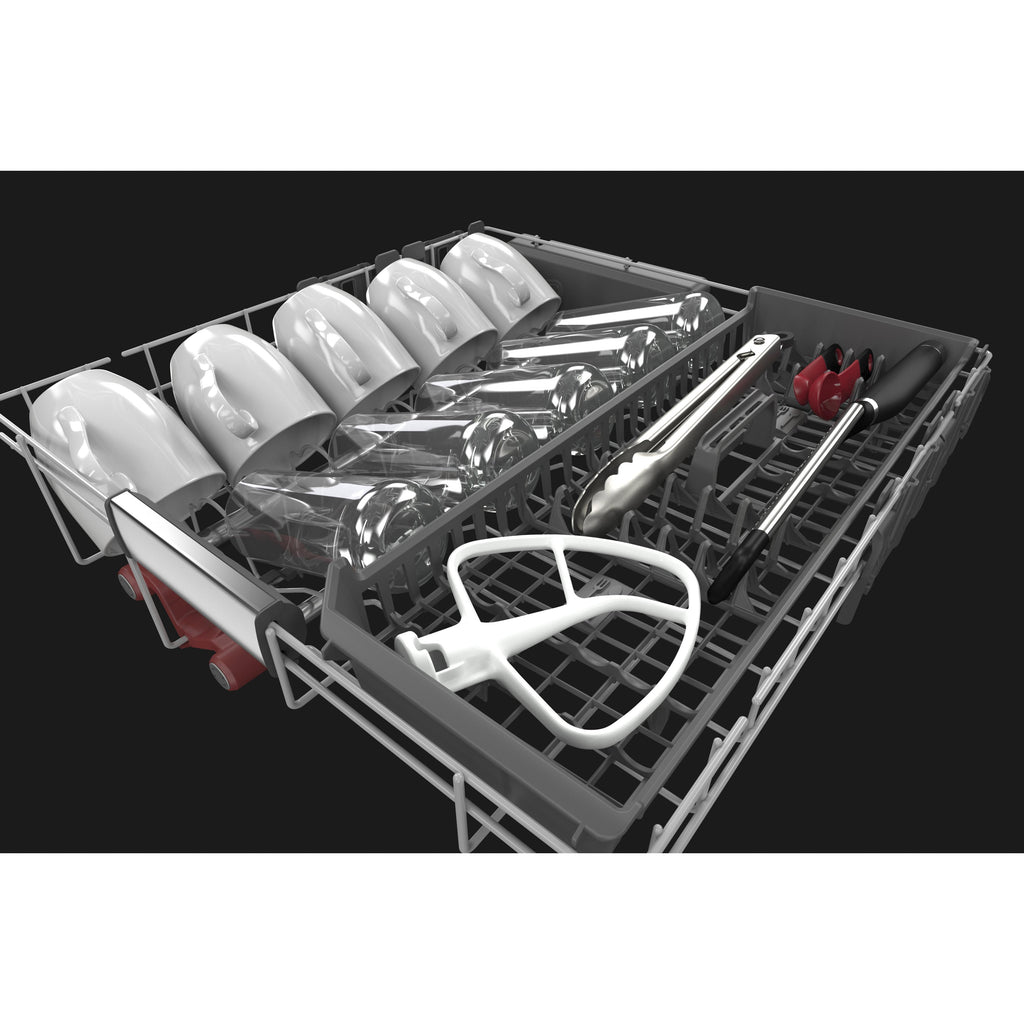 The largest third rack available has a deep, angled design that fits 6" glasses, mugs and bowls. It features rotating wash jets to clean items in the rack, a drying bar with tabs that help wick moisture off glasses and a removable utensil tray for cooking.