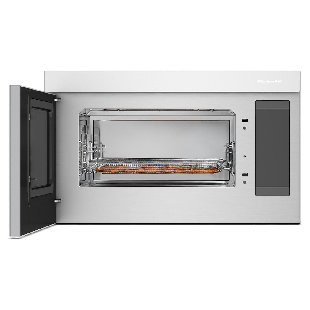 Maximizes cooking space for large dishes or multiple items at the same time. A hidden motor circulates microwave heating throughout the entire oven, eliminating the need for a traditional turntable.