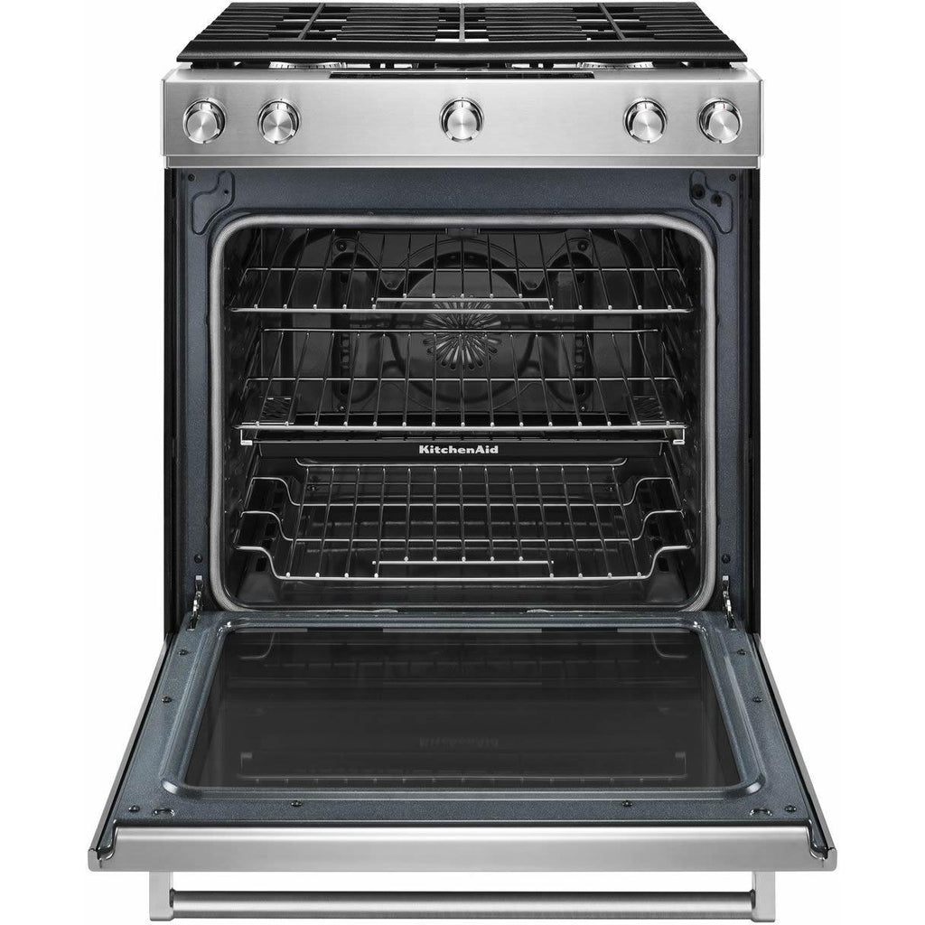 Automatically adjusts conventional baking temperatures to their convection equivalents from the KitchenAid™ app, making it effortless to use convection with recipes of all kinds.