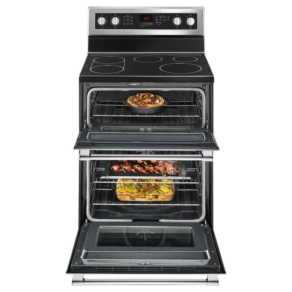 True convection uses a powerful third heating element and a sturdy fan to circulate even temperatures for more consistent roasting and baking.