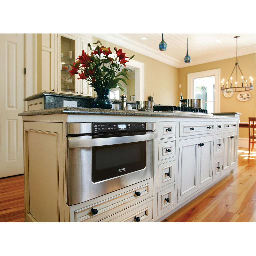 The Sharp Microwave Drawer Oven has been designed to complement the widest range of kitchen styles and appliances. The sleek, low-profile design and a stainless-steel finish beautifully complement any kitchen.