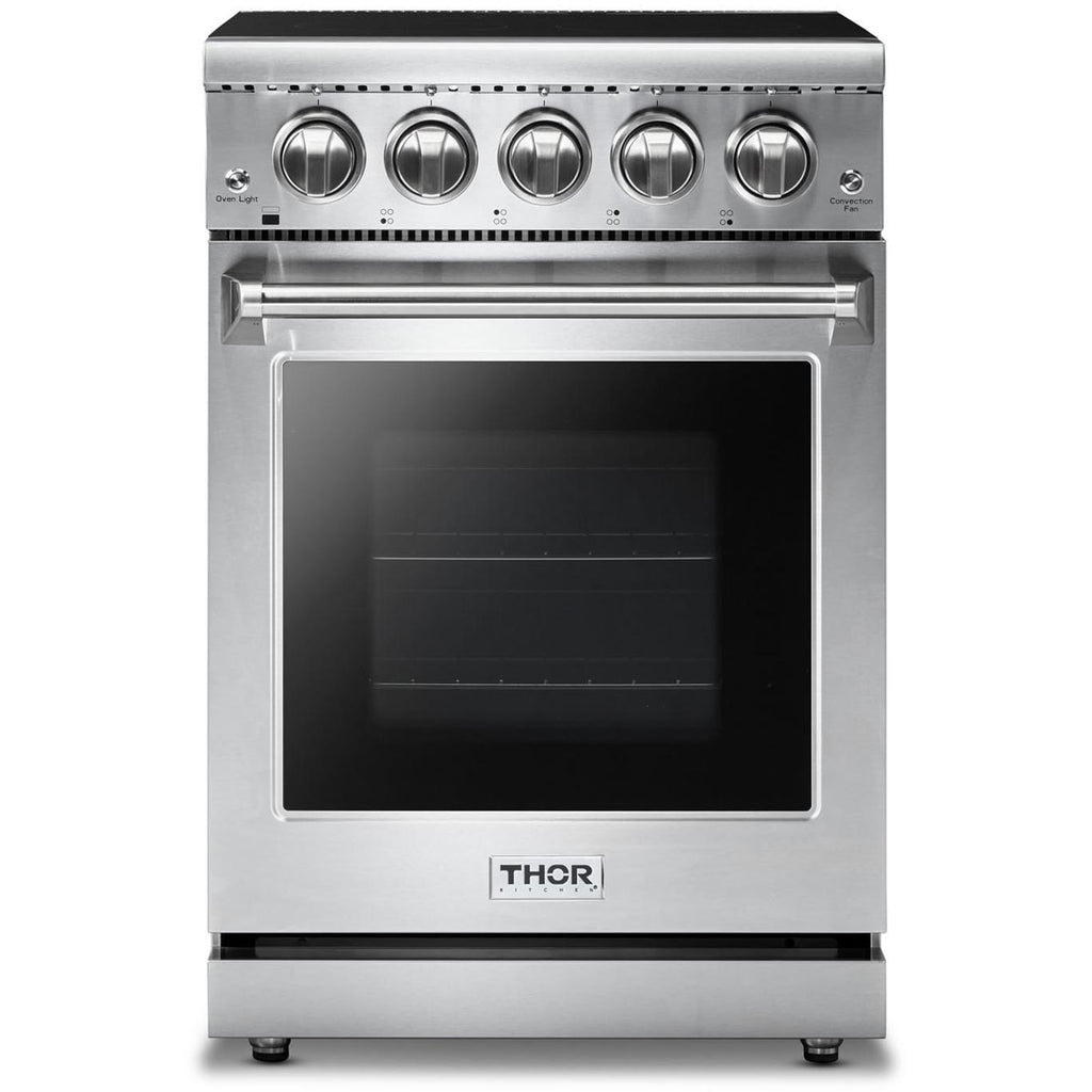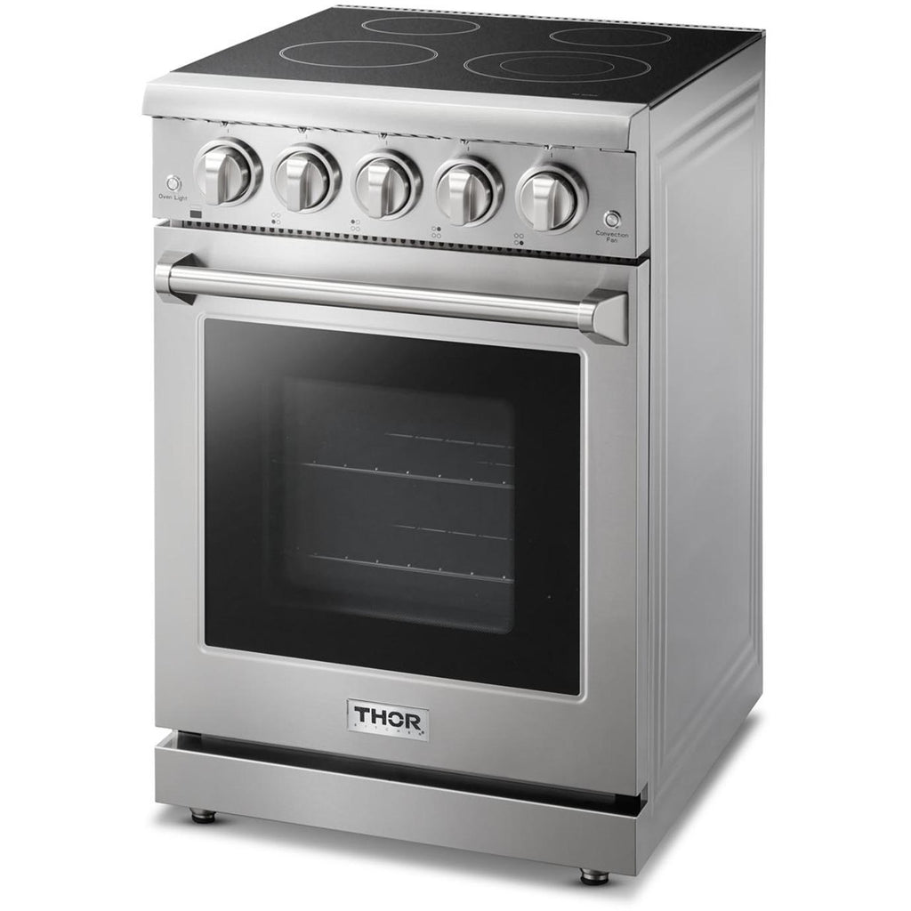 This freestanding professional electric range features a frameless glass top that is flush with the countertop giving it a seamless look that is easy to clean