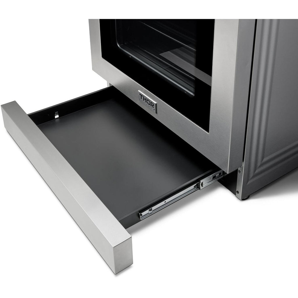 Storage drawer provides additional storage space for cooking trays and other kitchen utensils