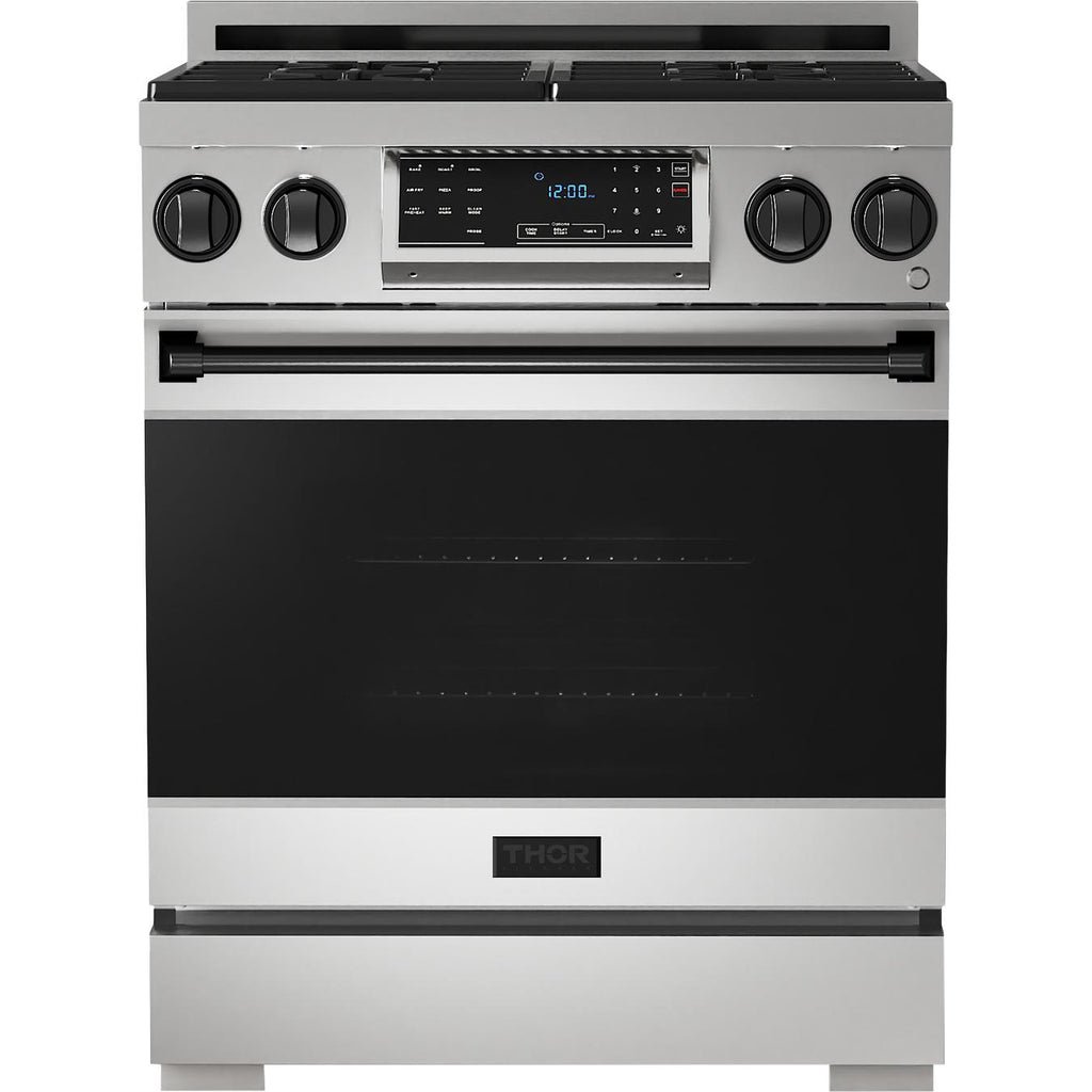 The range includes 1-inch adjustable feet with a square decorative cover for the front legs.
