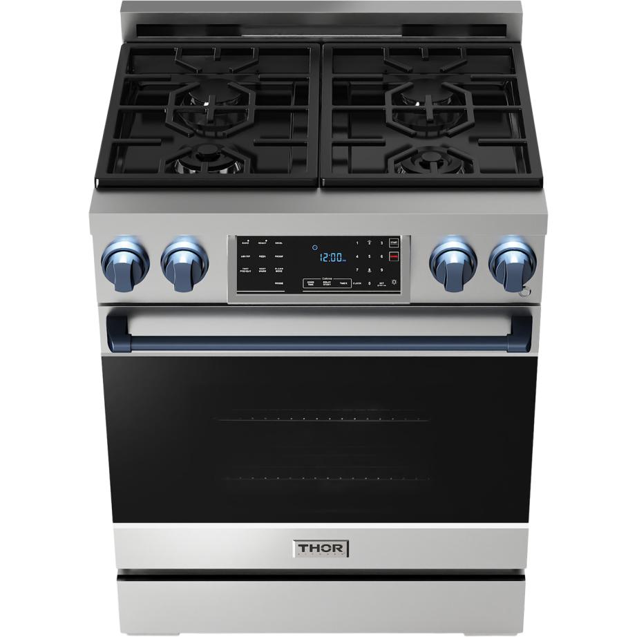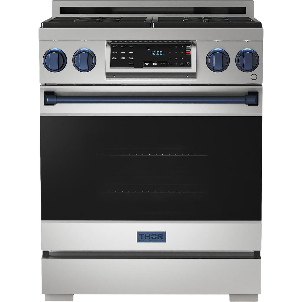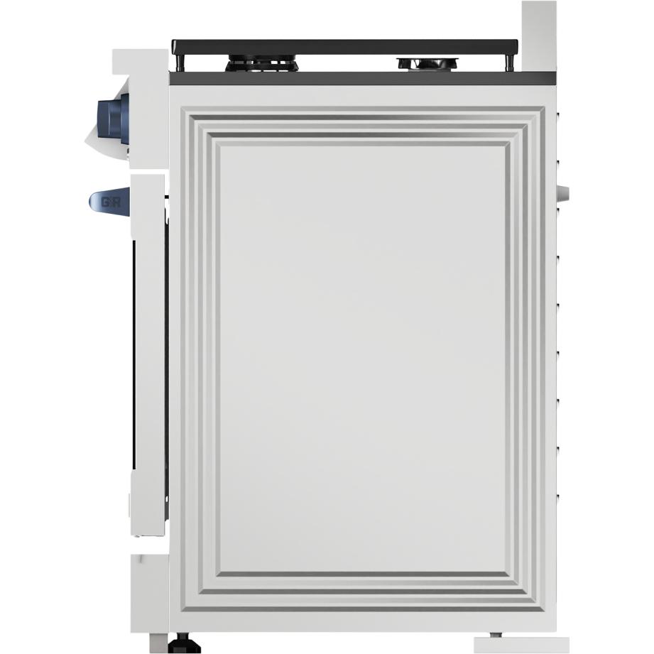 The range includes 1-inch adjustable feet with a square decorative cover for the front legs.