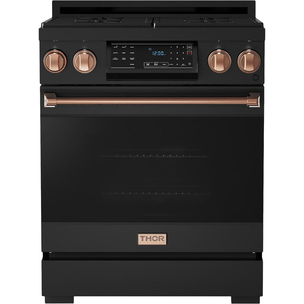 The range includes 1-inch adjustable feet with a square decorative cover for the front legs.