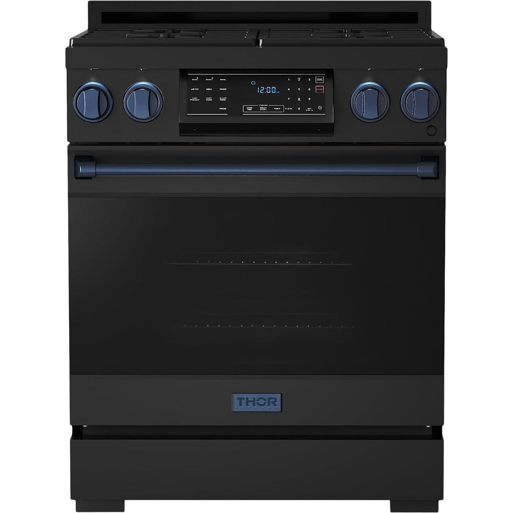 The range includes 1-inch adjustable feet with a square decorative cover for the front legs.