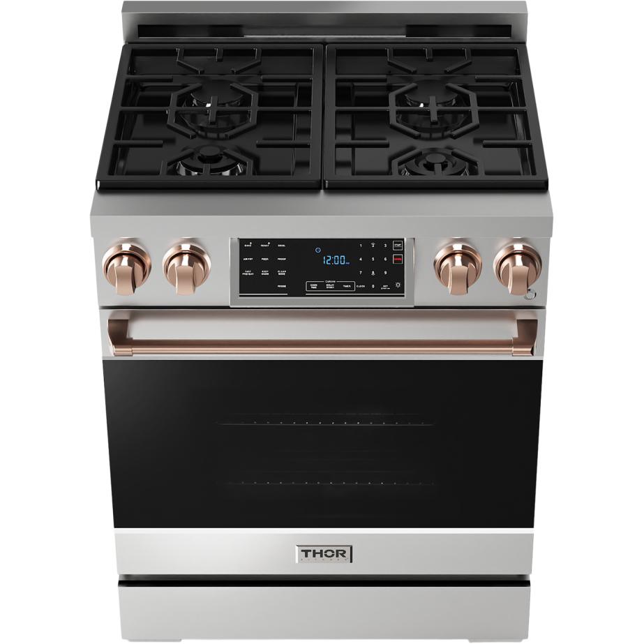 The range includes 1-inch adjustable feet with a square decorative cover for the front legs.