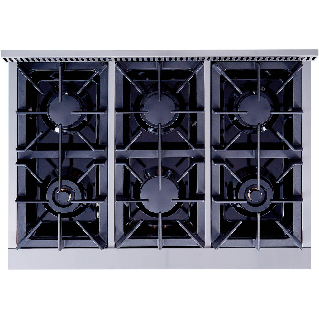 • Three continuous flat cast-iron cooking grates for easy movement of large cookware