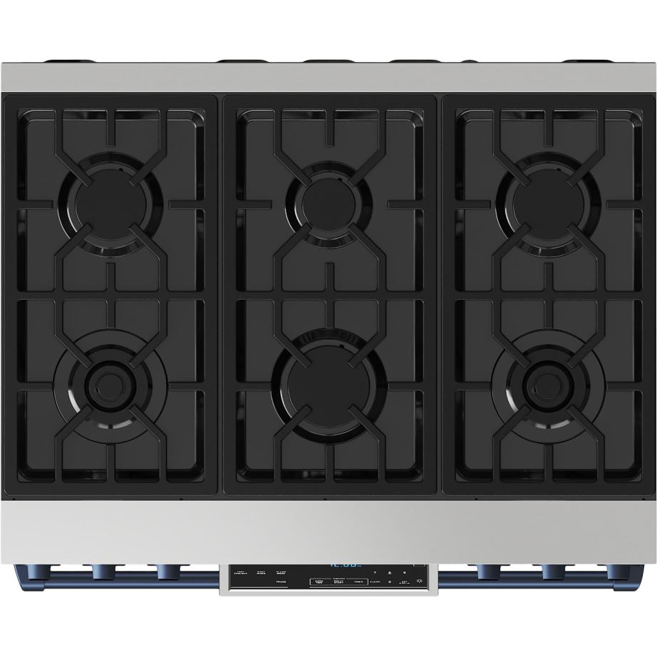 The continuous grate design allows easy movement of pots and pans across the cooktop.