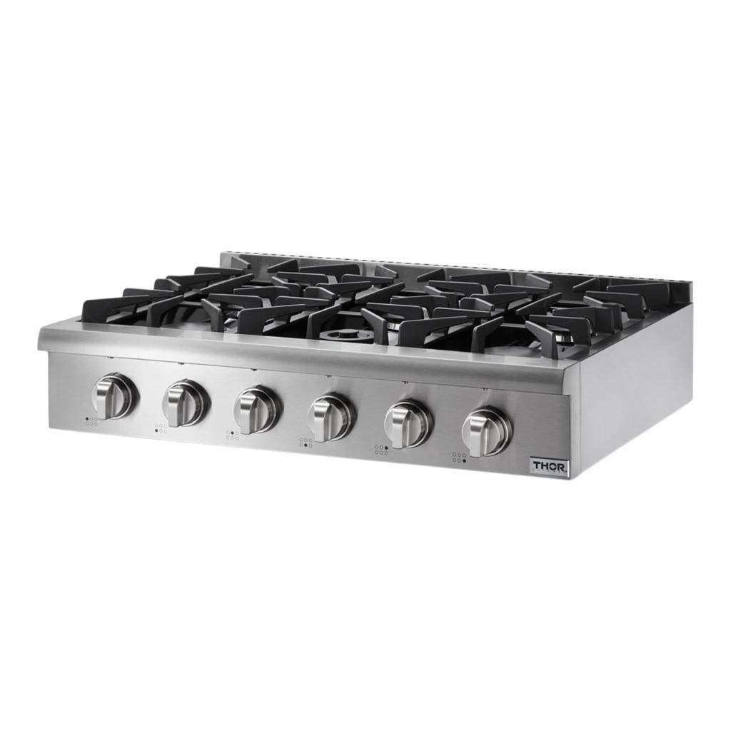 • Six Burners: From a high-powered 18,000 BTU burner to a steady 650 BTU simmer function, this rangetop provides the power you need for large family meals and the consistent low heat desired for cooking delicate sauces or melting chocolate.