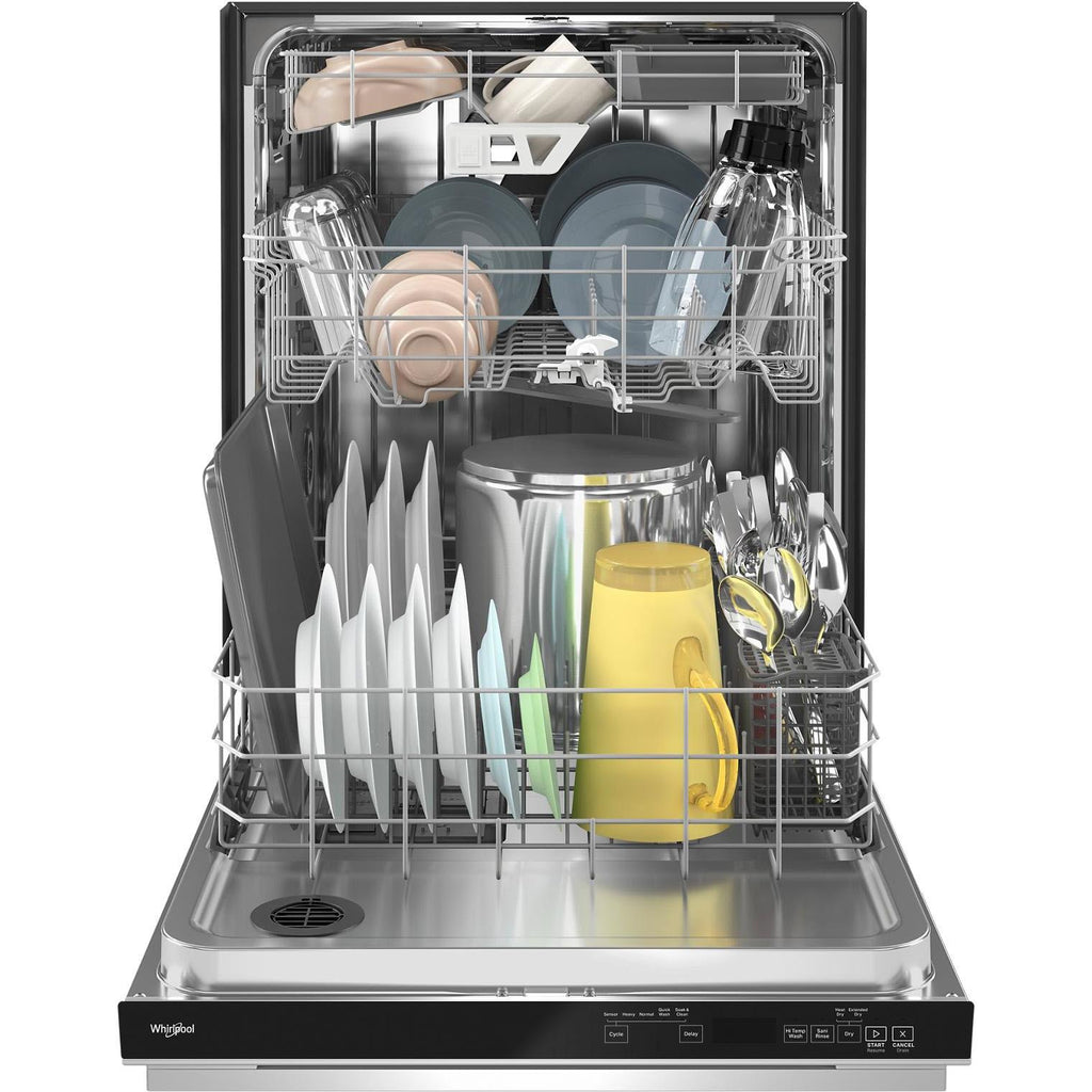 Whirlpool® Dishwashers with the Sani Rinse Option are certified to eliminate 99.999% of food soil bacteria and reach a final rinse temperature greater than 150°F to sanitize dishes.