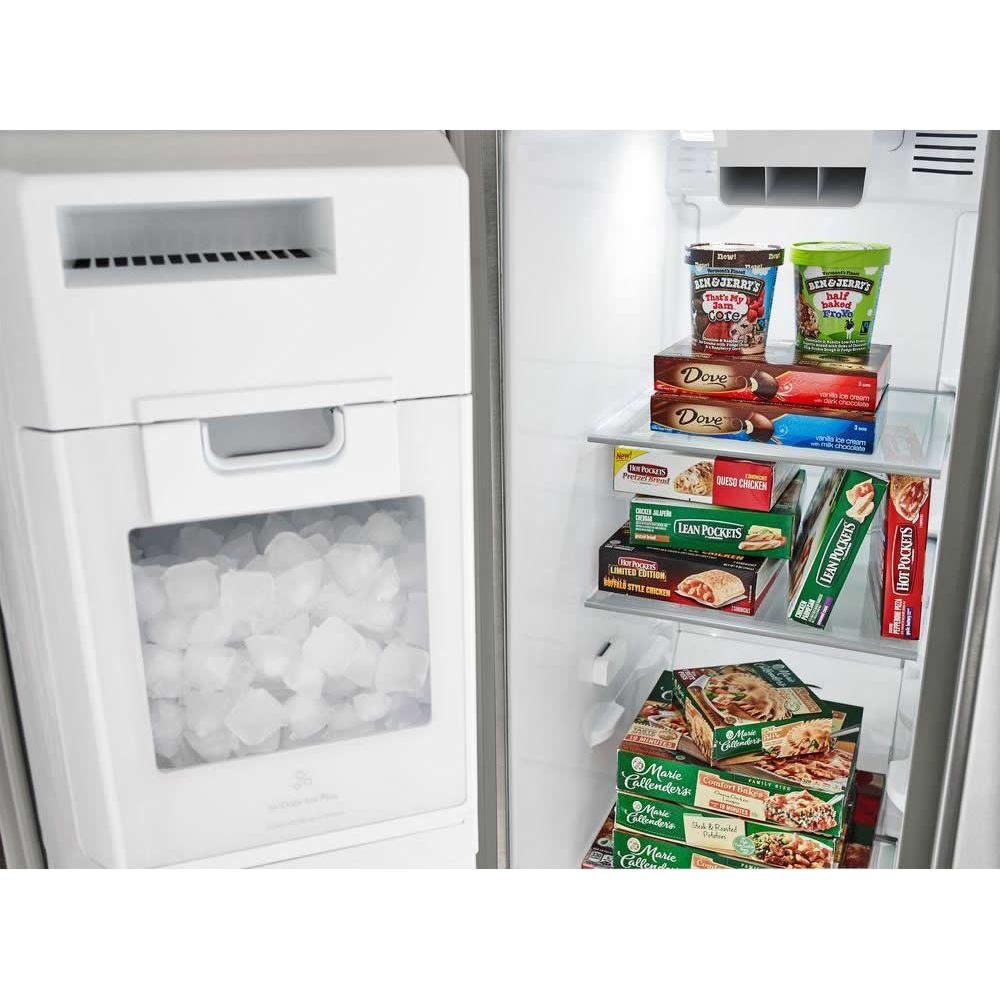In-Door-Ice® storage creates room for an extra full shelf in the refrigerator by moving the ice bin to the door.