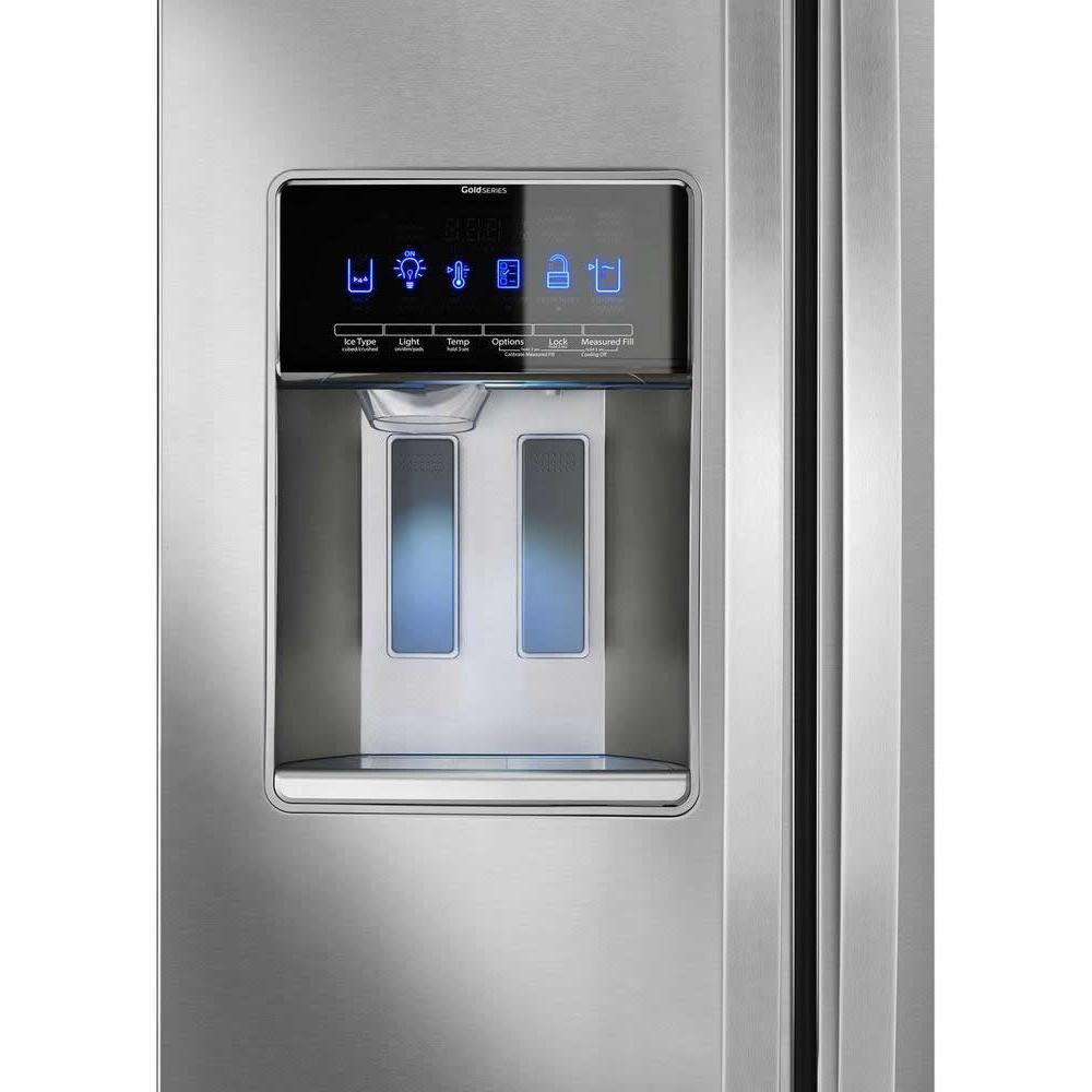 Minimize the need for bottled water with an exterior dispenser that offers cold, filtered water and ice without opening the door, while electronic controls make accessing features easy. The flush dispenser and Tap Touch controls also provide a sleek look and are easy to use.