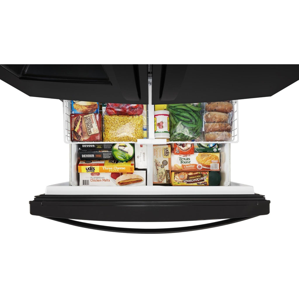 Easily organize frozen favorites with two-tier freezer storage, including two sliding bins.